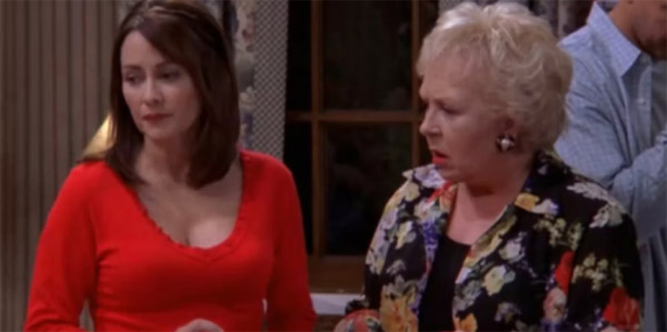In the subject episode, Debra and Ray attend a PTA meeting. A friend of Debra…who’s just had a breast augmentation procedure…drifts by. She’s wearing a low-cut dress and later at home, Debra asks Ray if “she’s big enough.” Ray sees his opportunity but takes a cautious approach. “Well,” he says in measured tones. “I think you’re great. But of course, it all what makes YOU comfortable.” He leaves the next day for an week-long business trip.