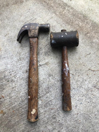 Somehow, several of his tools found their way into my garage, including the hammer I was holding. All are ancient; he brought them with him and who knows how old they were then.